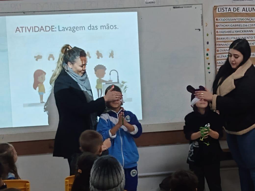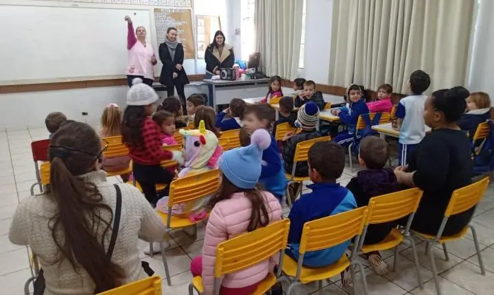 Na tarde da última quarta-feira (25), os alunos do Infantil 5 da Escola Municipal Dona Leopoldina participaram de uma aula diferente, mas essencial. A enfermeira Suelini Colombo conduziu uma palestra educativa sobre higiene pessoal, reforçando cuidados importantes para a saúde e o bem-estar das crianças.