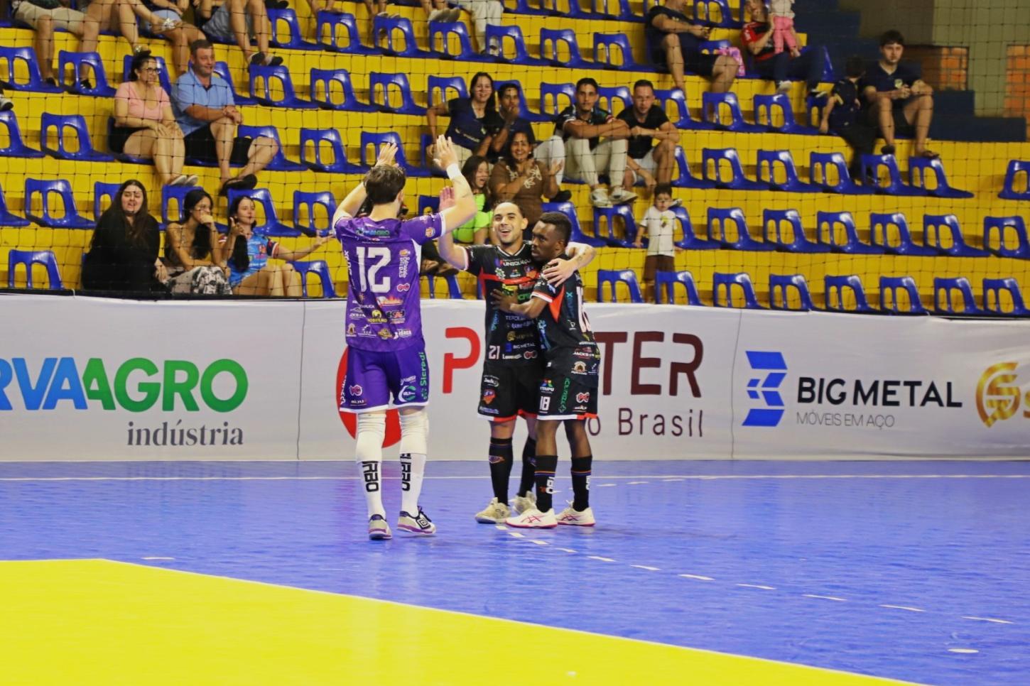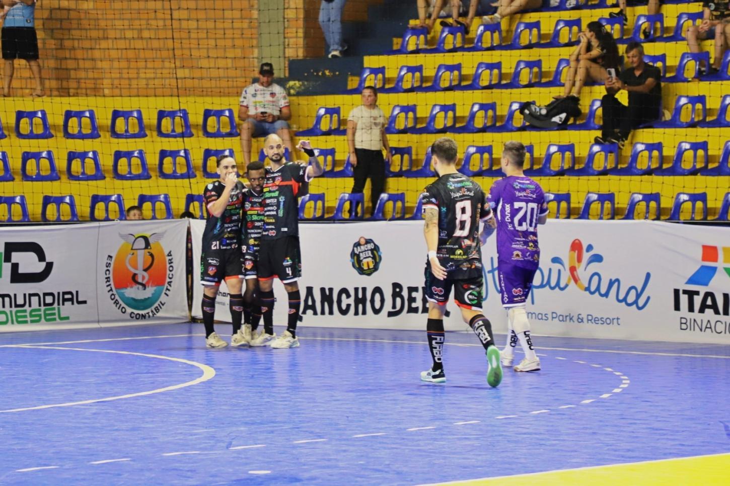 A AFI Uniguaçu Itaipulândia conquistou uma vitória convincente diante de sua torcida na noite de terça-feira ao derrotar o Palmas por 4 a 1, em confronto válido pela Copa União. Jogando em casa, o time demonstrou superioridade desde o início, com gols de Ari, Kanté, Café e Marcinho, garantindo o placar elástico e animando o público presente no ginásio.