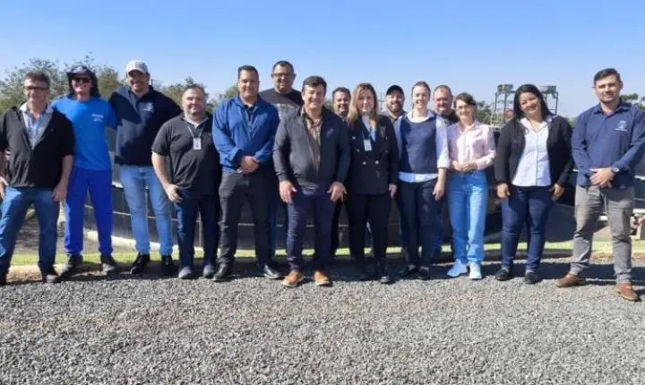O prefeito Dinho Maraskin, acompanhado da vice-prefeita Fabricia Bedendo, vereadores e representantes da Sanepar, estiveram visitando a Estação de Tratamento de Esgoto Modular em Santa Helena.