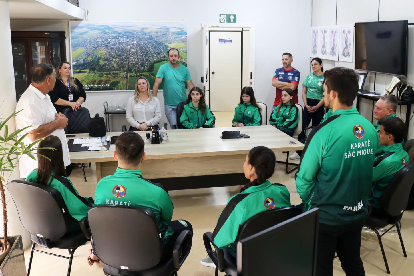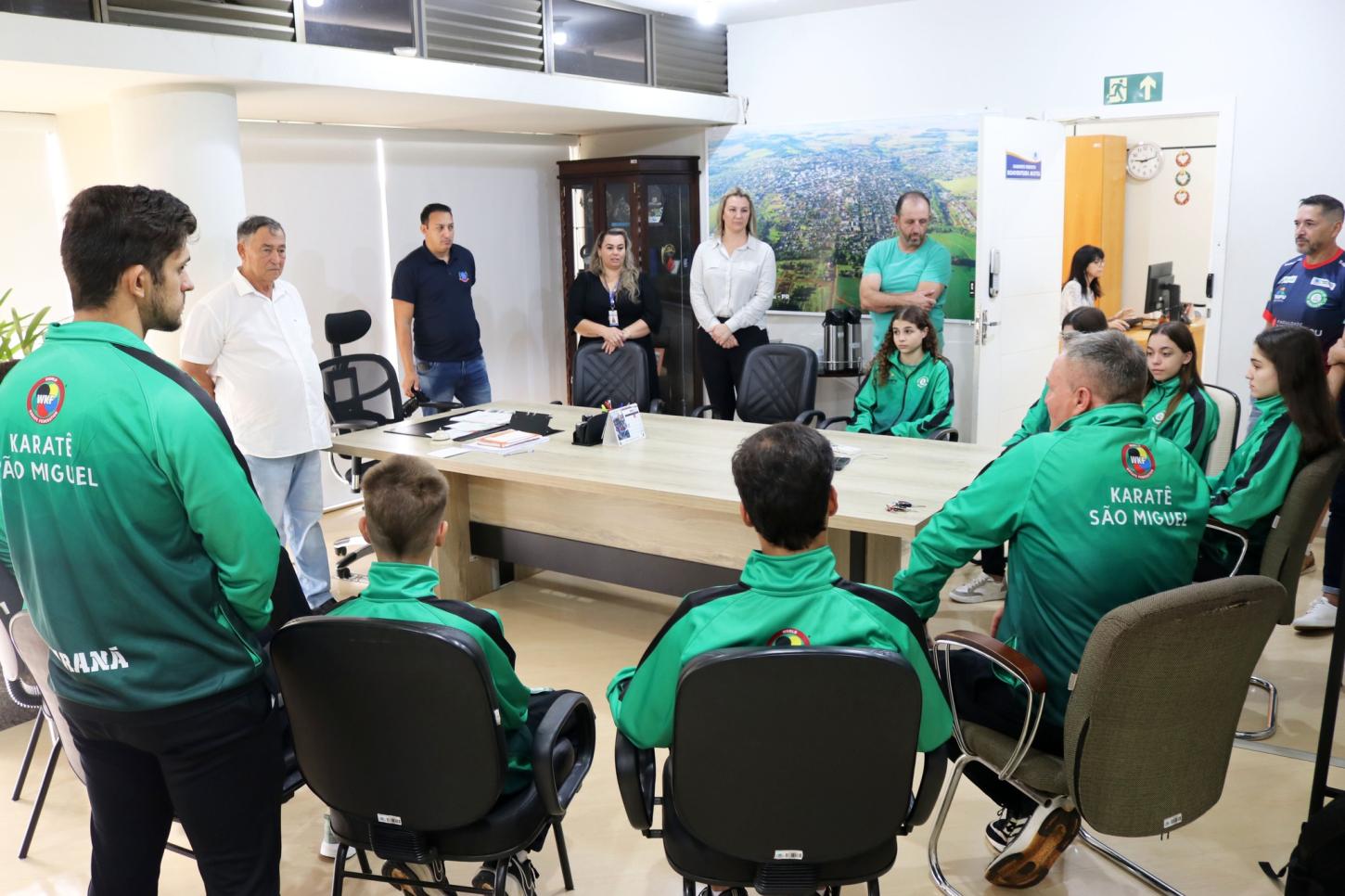 A equipe de karatê que representa de São Miguel do Iguaçu por meio da Secretaria Municipal de Cultura e Esporte esteve na manhã desta sexta-feira, 09, no gabinete do prefeito municipal para apresentar à equipe do governo os resultados das diversas conquistas recentes da modalidade.