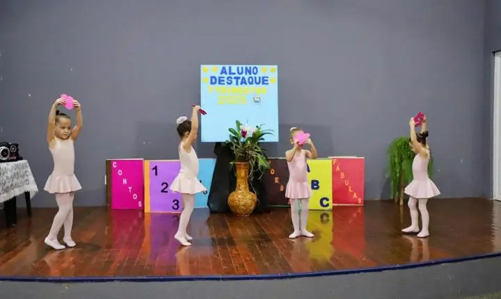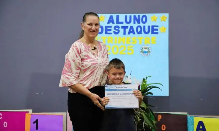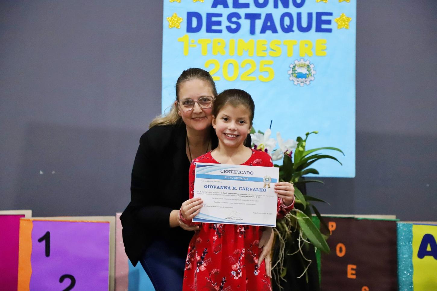 A Escola Municipal Dona Leopoldina realizou nesta semana uma cerimônia especial para homenagear 20 alunos que se destacaram no 1º trimestre letivo de 2025, com médias acima de 8,0 nas avaliações do Projeto Mais IDEB nos Municípios Lindeiros ao Lago de Itaipu, nas avaliações de Língua Portuguesa e Matemática aplicadas pela SMED e no Compromisso Nacional Criança Alfabetizada (CNCA). O evento também prestou reconhecimento aos professores da turma com melhor desempenho da escola, reforçando a valorização do trabalho pedagógico coletivo.