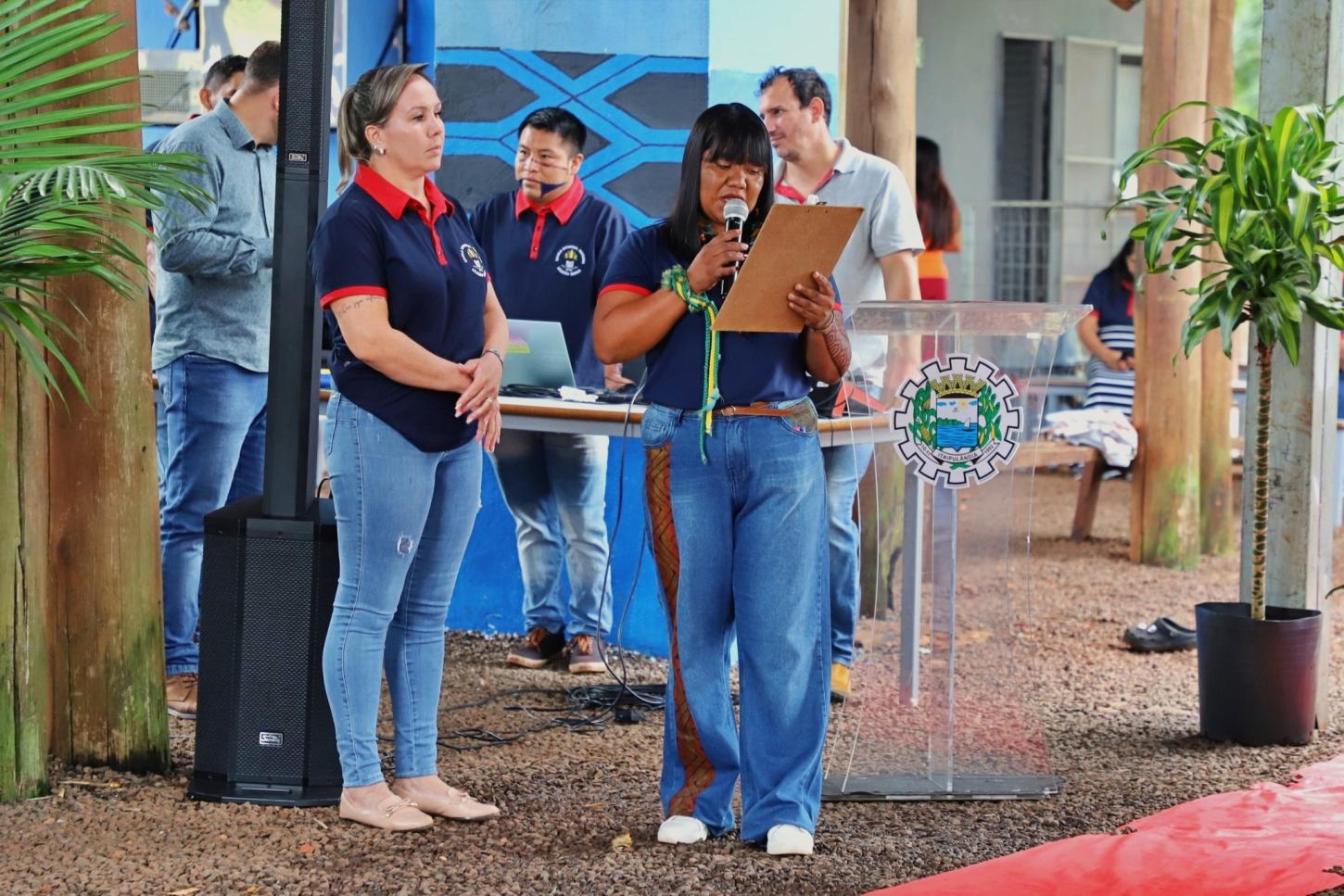 Na manhã desta segunda-feira (13), foi realizada a cerimônia de abertura da 8ª Semana Cultural Indígena na Escola Estadual Arandu Renda, localizada na aldeia Aty Miri, em Itaipulândia. O evento contou com a presença de representantes dos poderes Executivo e Legislativo, além da Secretaria Municipal de Educação, reunindo também autoridades locais e representantes de entidades e instituições regionais ligadas à causa indígena.