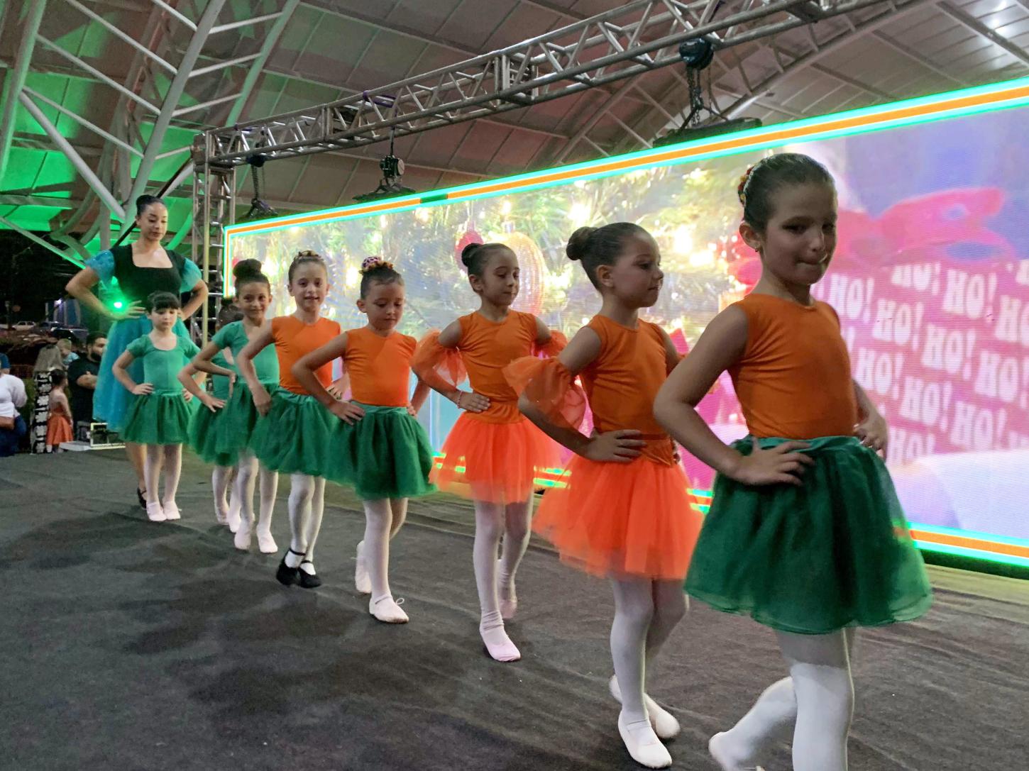 Já no domingo, dia 14, a Mostra de Dança – Balé e Contemporâneo reuniu cerca de 200 alunas da Oficina de Dança do Departamento de Cultura. Sob a orientação das professoras Karla, Vanessa e da professora auxiliar Pâmela, as bailarinas apresentaram coreografias natalinas inspiradas no balé clássico e na dança contemporânea. Temas como fadas, flores, abelhinhas, borboletas e personagens lúdicos deram vida a um verdadeiro jardim mágico no palco. As apresentações evidenciaram técnica, sensibilidade, criatividade e emoção, reforçando a importância da dança no desenvolvimento artístico, corporal e emocional de crianças e adolescentes.