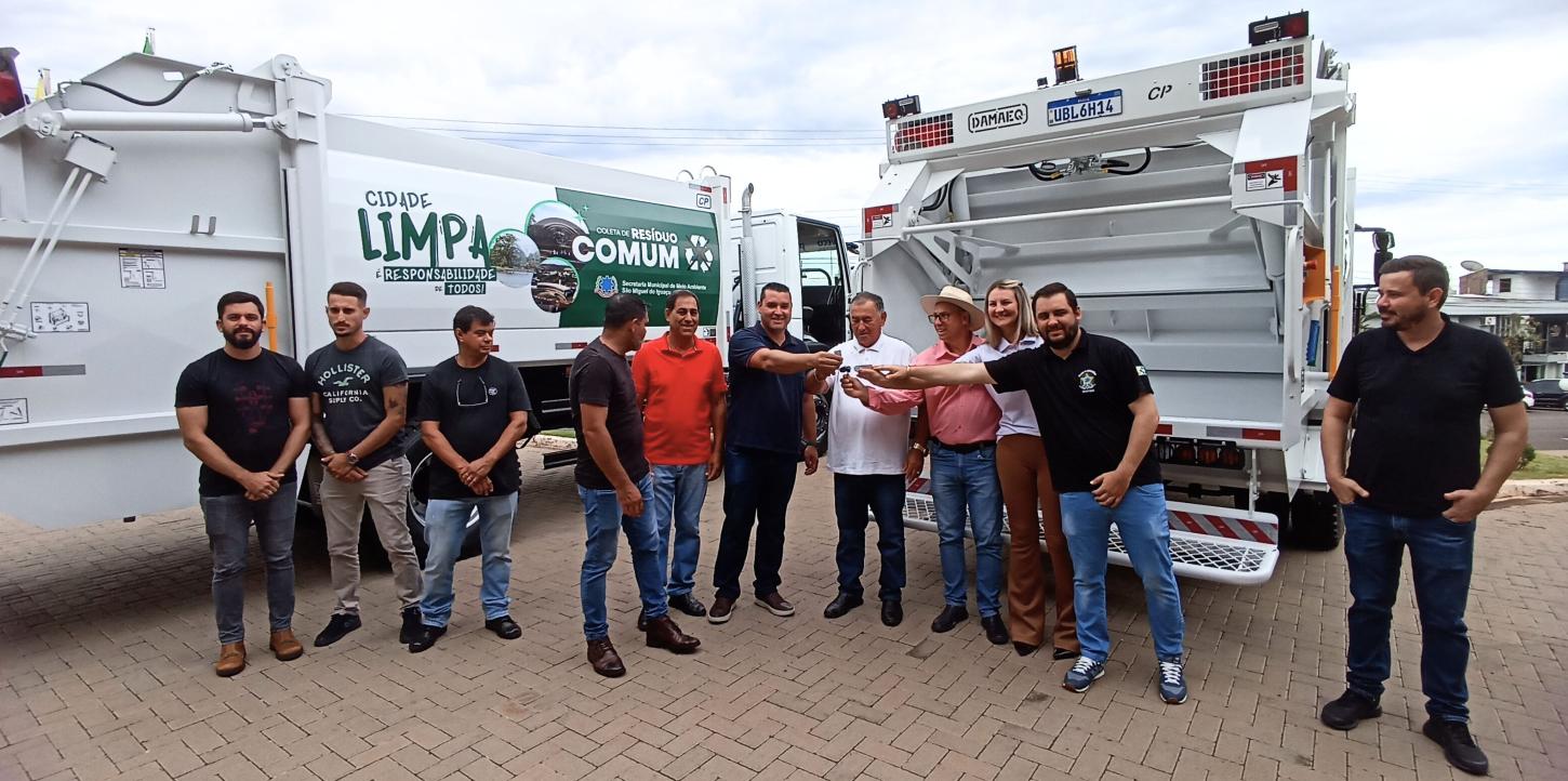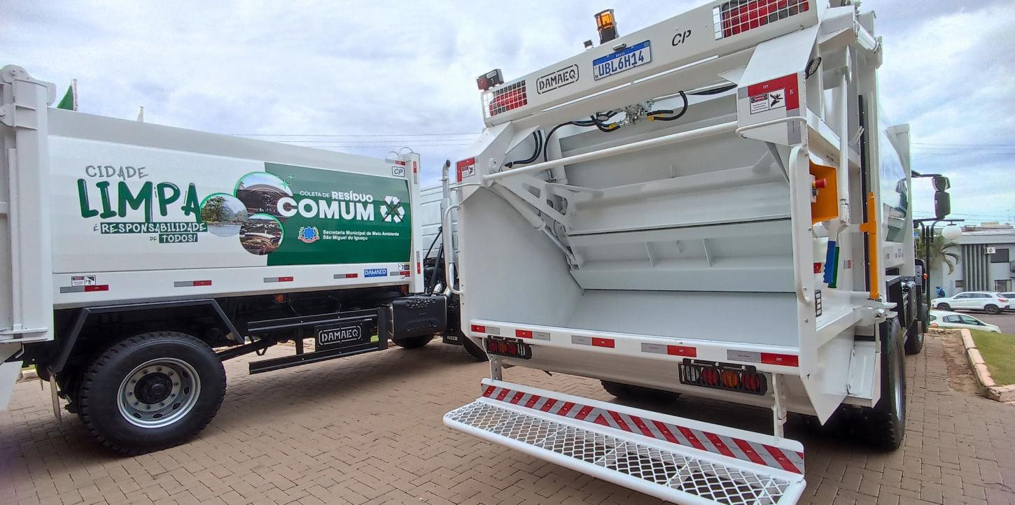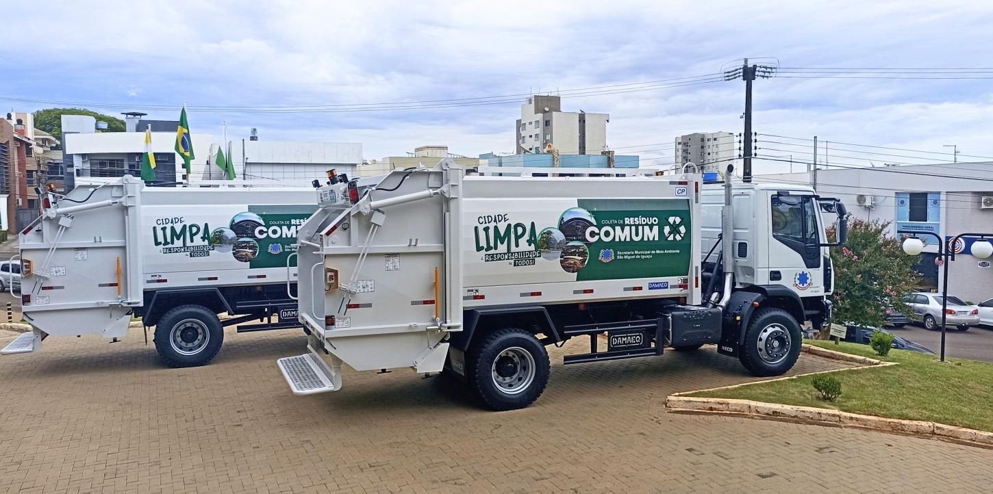 O Governo Municipal de São Miguel do Iguaçu, por meio da Secretaria de Meio Ambiente, realizou a aquisição de dois novos caminhões compactadores de lixo, destinados à coleta e ao transporte de resíduos sólidos urbanos. O investimento, realizado com recursos próprios do Município, totaliza R$ 1.414.000,00.
