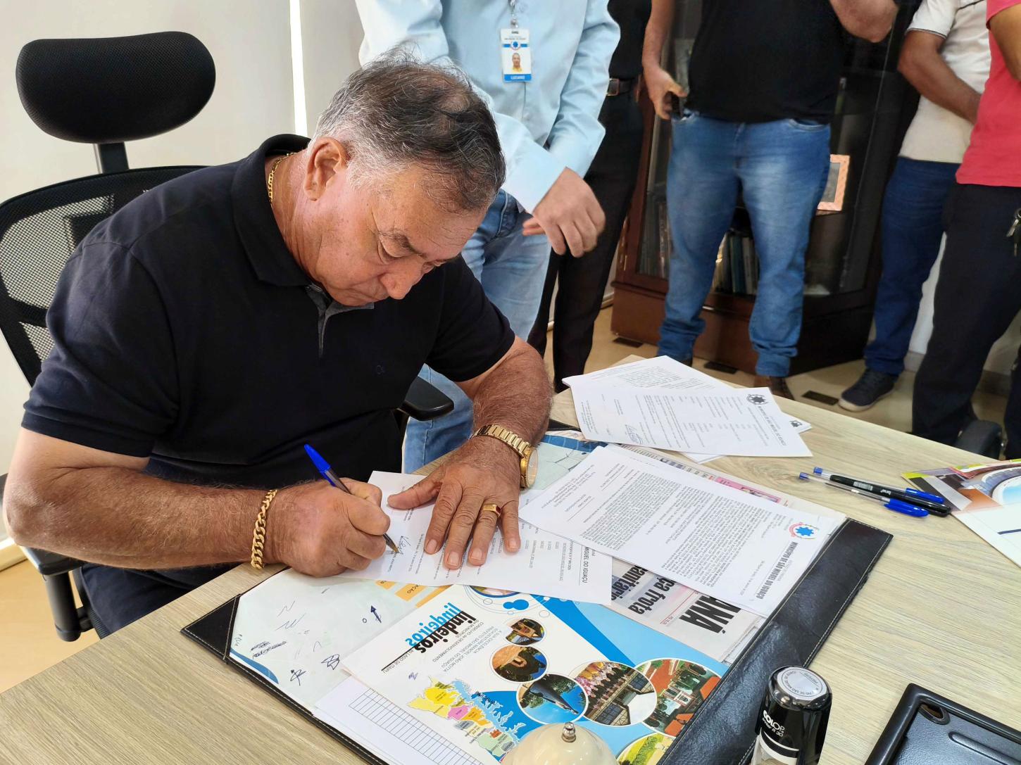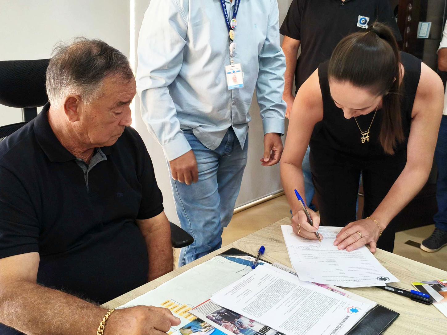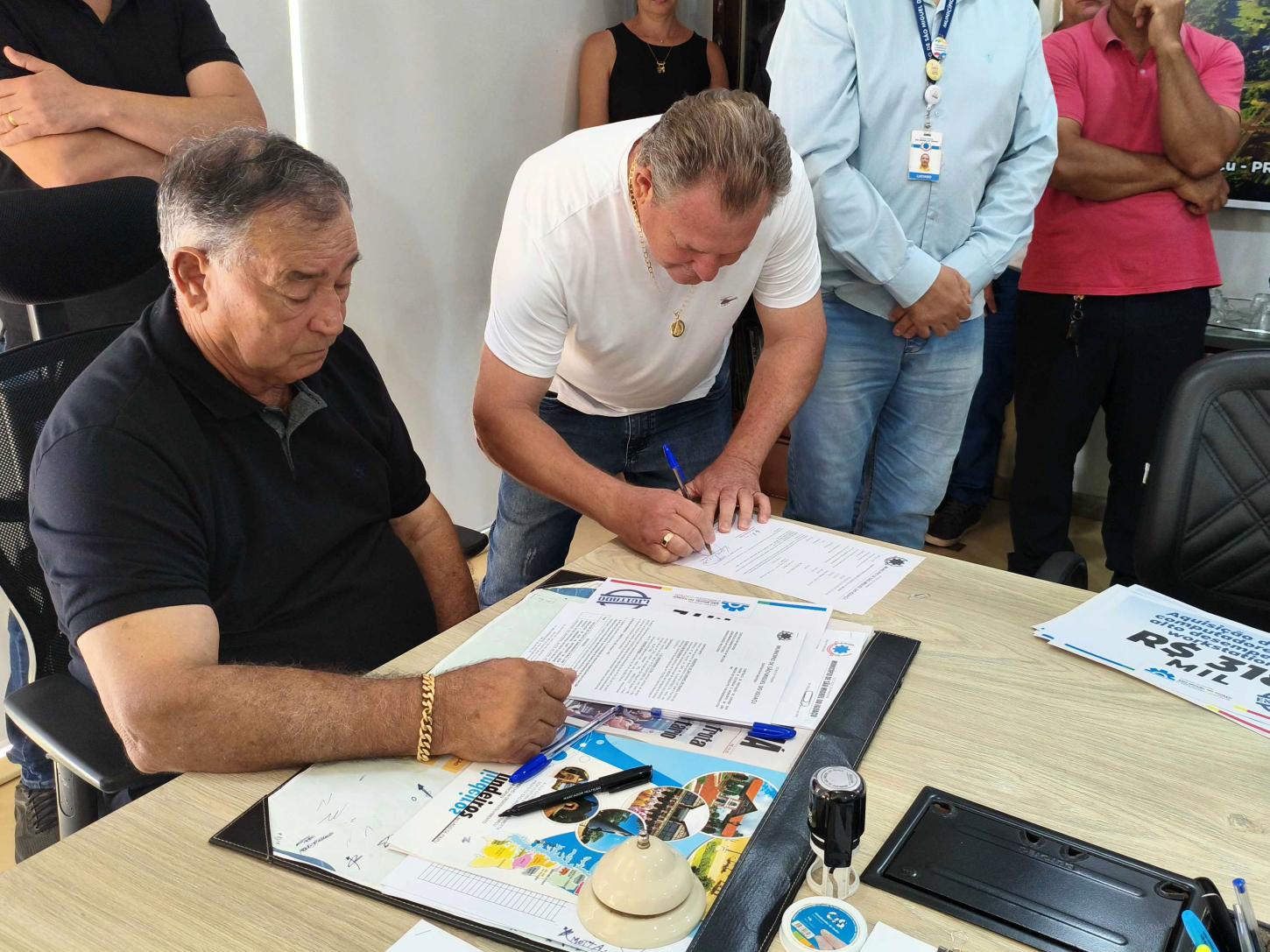 Também foi assinada a ordem de serviço para a execução do Projeto de Saneamento Rural na comunidade Agrovila Ipê, em Santa Rosa do Ocoí. A obra prevê a implantação de 2.117 metros de rede de distribuição de água potável, além da instalação de 48 hidrômetros, garantindo abastecimento adequado e mais qualidade de vida às famílias atendidas.