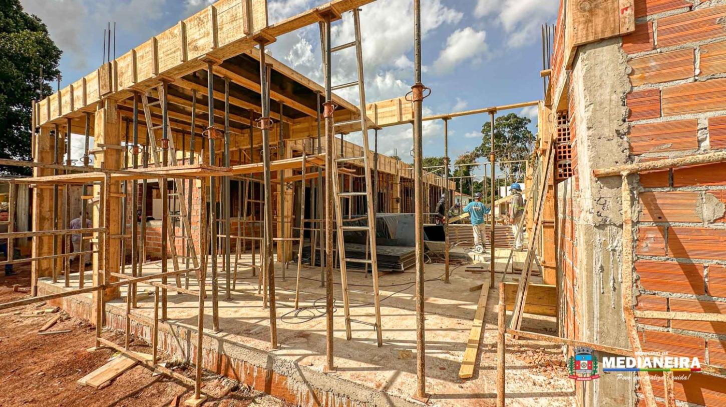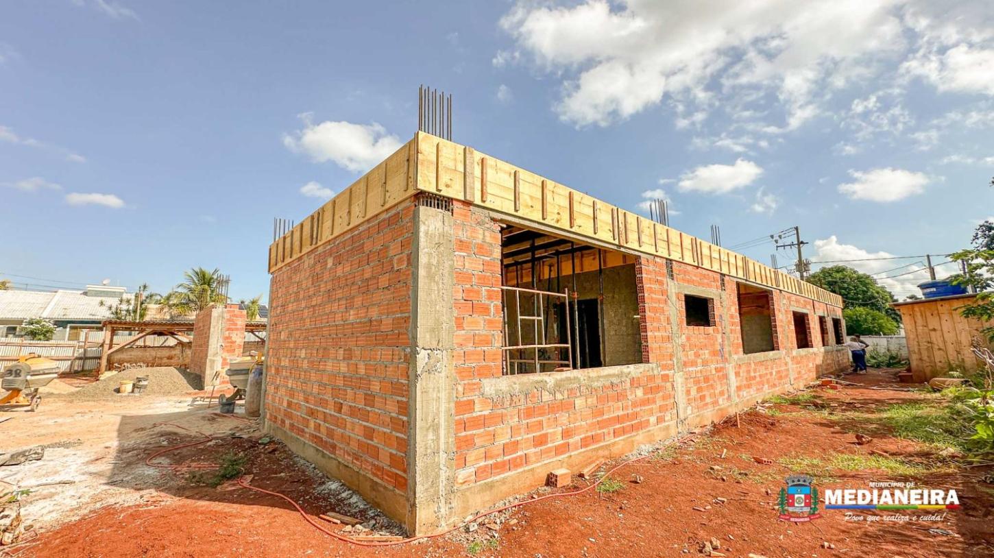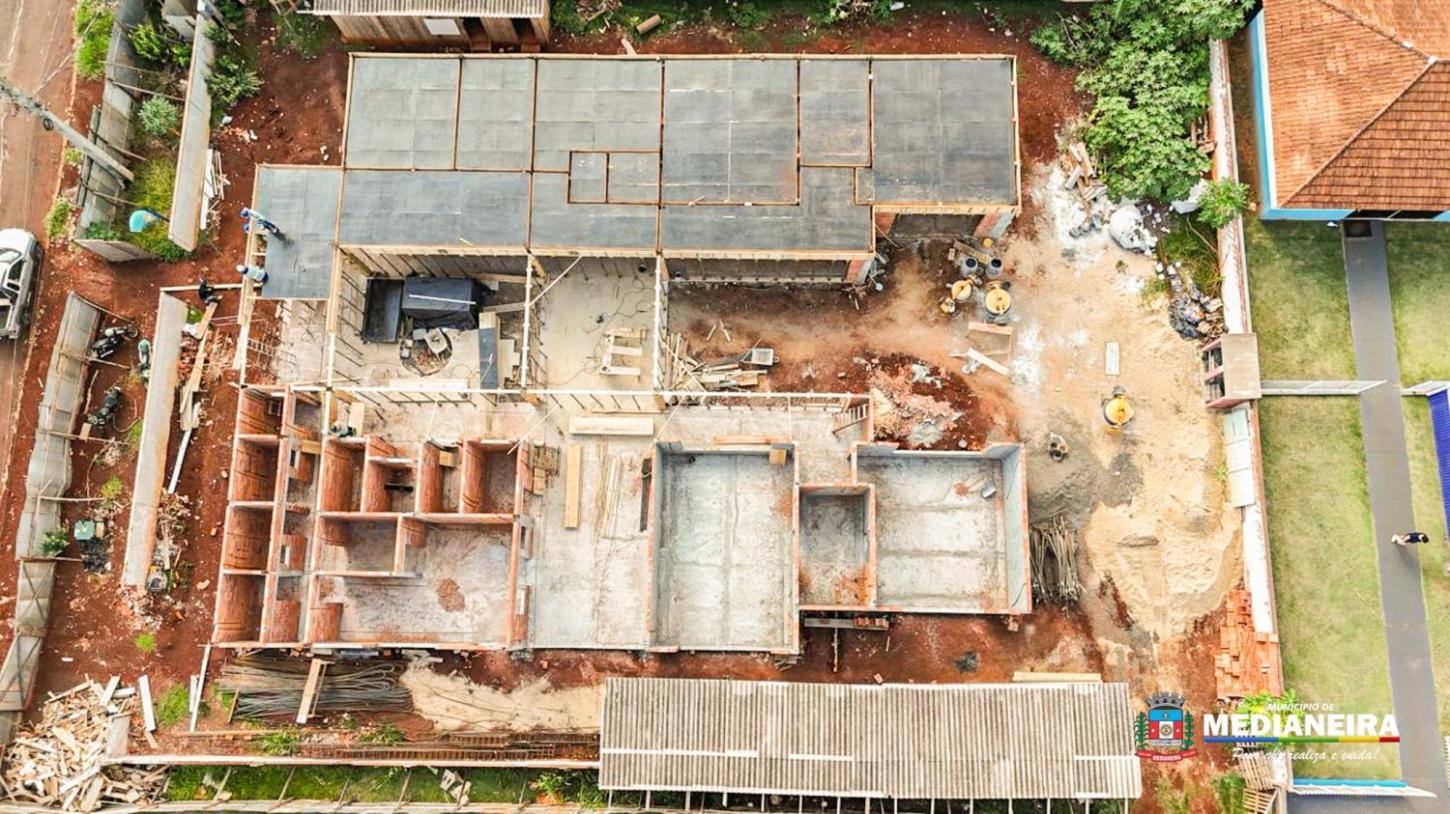 O novo Centro Municipal de Educação Infantil (CMEI) do bairro Nazaré, em Medianeira, já está com 50% do cronograma de obras executado e começa a ganhar forma.