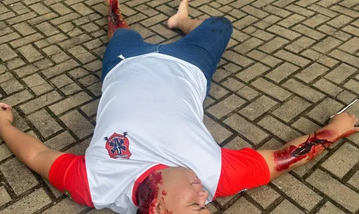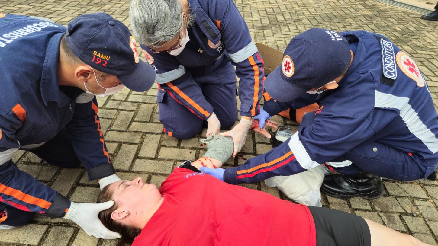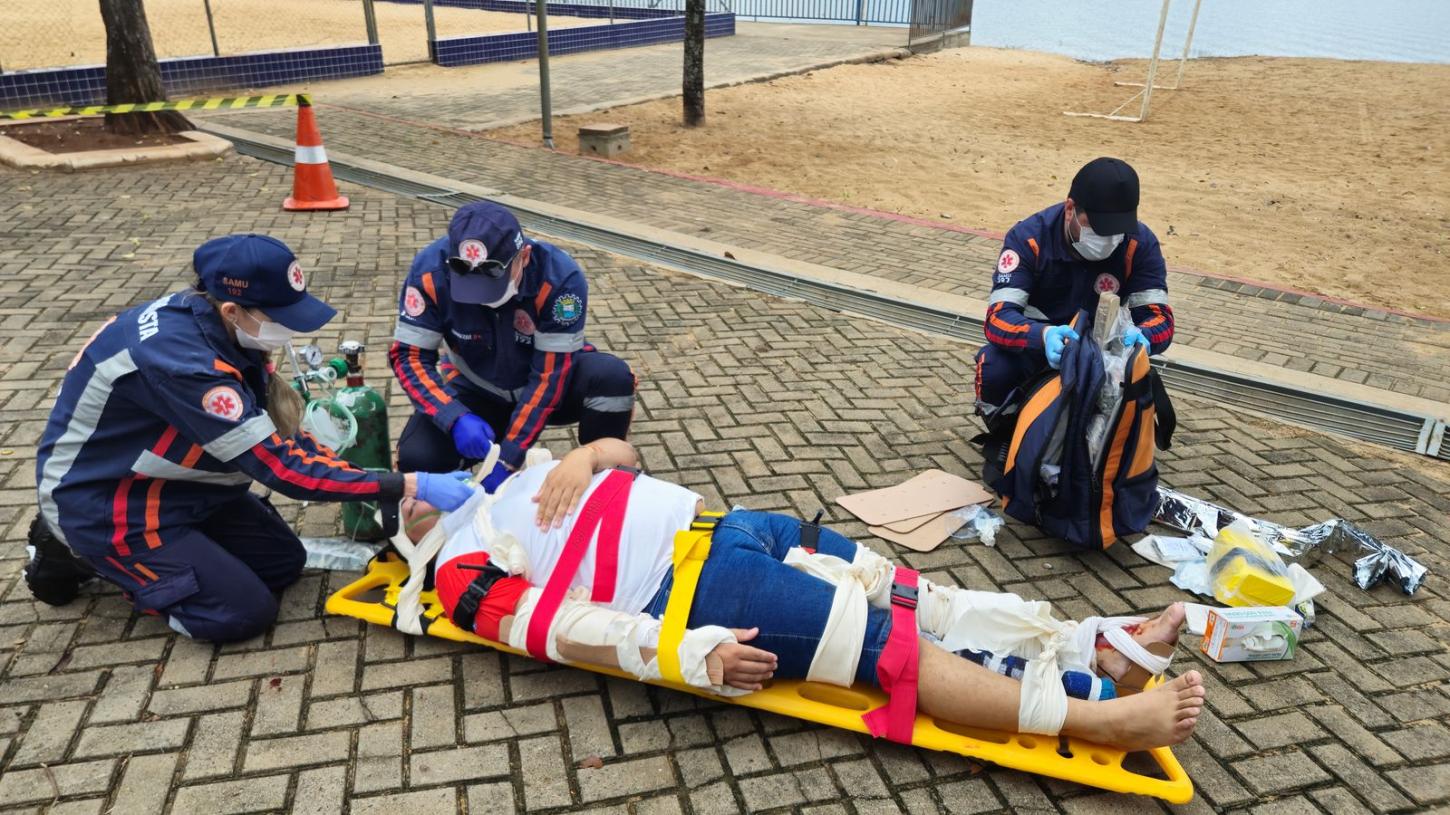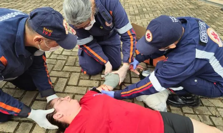 No simulado, os socorristas atenderam vítimas de arma branca e agressão, vítimas com fraturas expostas de membros inferiores e superiores, acidentes auto e moto. Todas as vítimas atendidas com técnicas atualizadas dos novos protocolos.