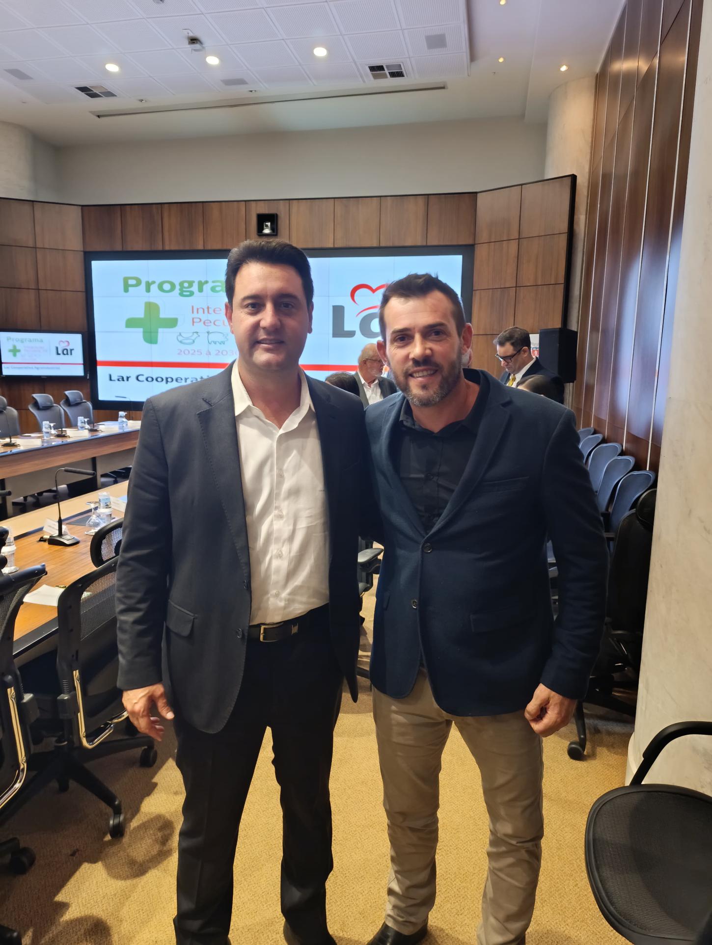 A diretoria da Lar Cooperativa Agroindustrial, representada pelo diretor-presidente Irineo da Costa Rodrigues, pelo 1º vice-presidente Diogo Sezar de Mattia e pelo 2º vice-presidente Urbano Inácio Frey, esteve reunida com a cúpula do Governo do Estado no Palácio Iguaçu em Curitiba e apresentou ao governador Carlos Massa Ratinho Júnior, ao vice-governador Darci Piana, os resultados recordes da cooperativa e um conjunto de propostas para fortalecer a infraestrutura e a economia nas regiões onde atua. Participaram secretários de Estado, deputados federais e estaduais, prefeitos de diversos municípios e lideranças do setor empresarial.