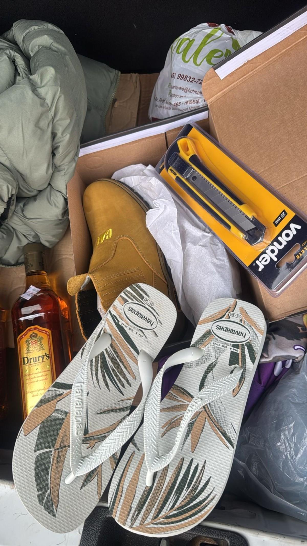 Durante a abordagem, os policiais realizaram buscas no interior do automóvel e encontraram diversos itens, entre eles bebidas, perfumes e outros produtos que podem ser ser provenientes dos furtos registrados.