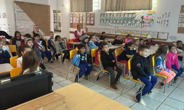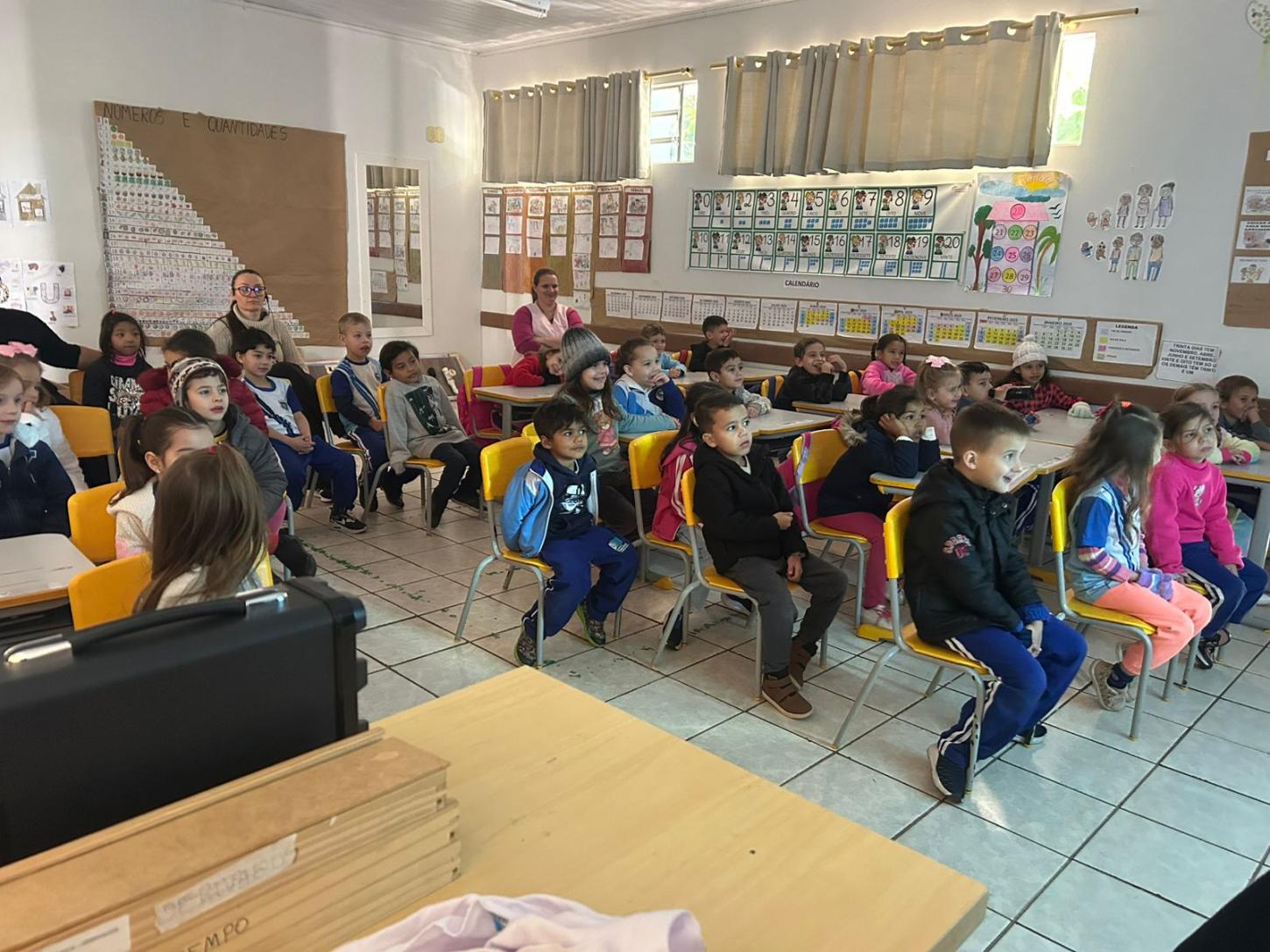 Na tarde da última quarta-feira (25), os alunos do Infantil 5 da Escola Municipal Dona Leopoldina participaram de uma aula diferente, mas essencial. A enfermeira Suelini Colombo conduziu uma palestra educativa sobre higiene pessoal, reforçando cuidados importantes para a saúde e o bem-estar das crianças.