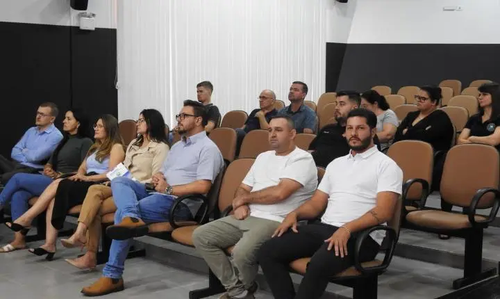A apresentação do balanço está a cargo do servidor Isac Griebeler. Secretária municipal da Finanças, Leila Prates também se faz presente.