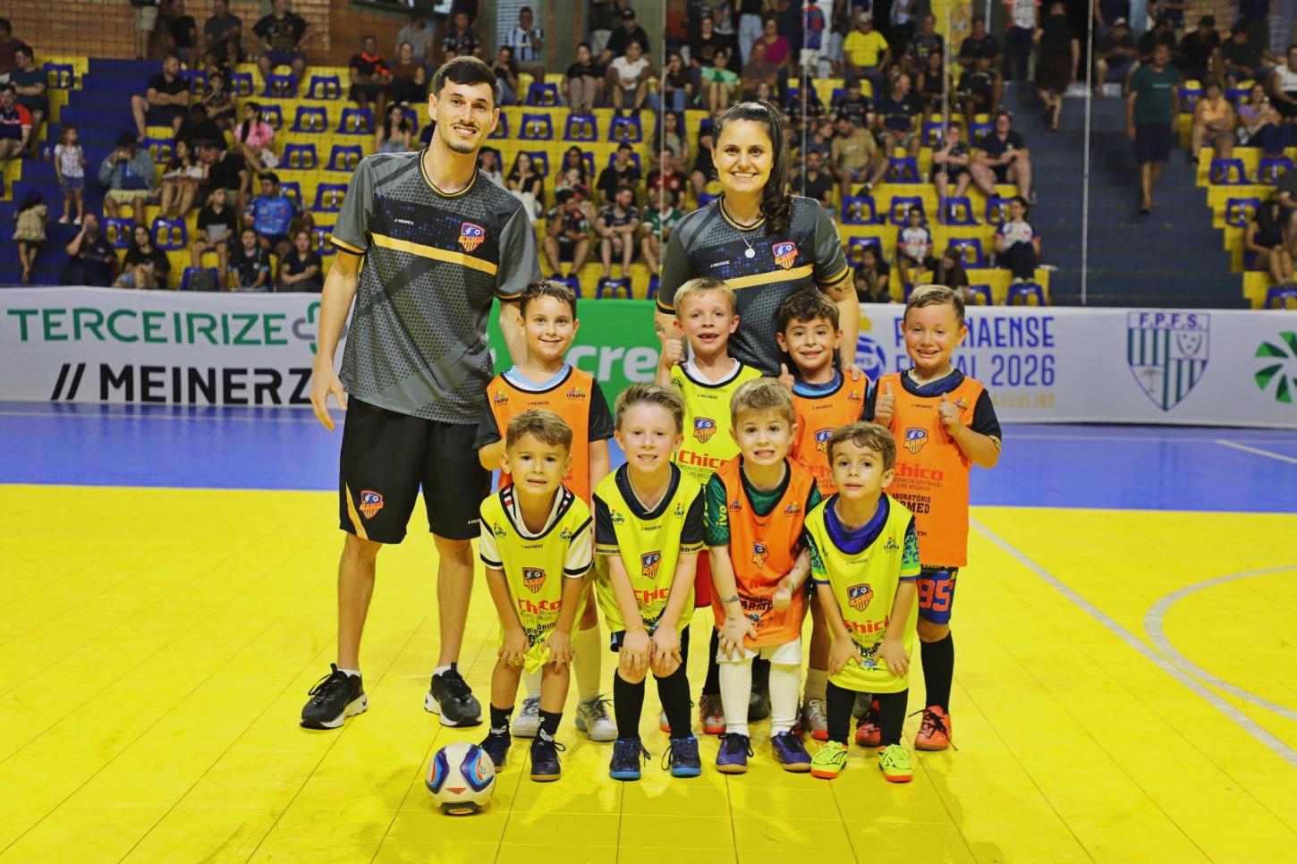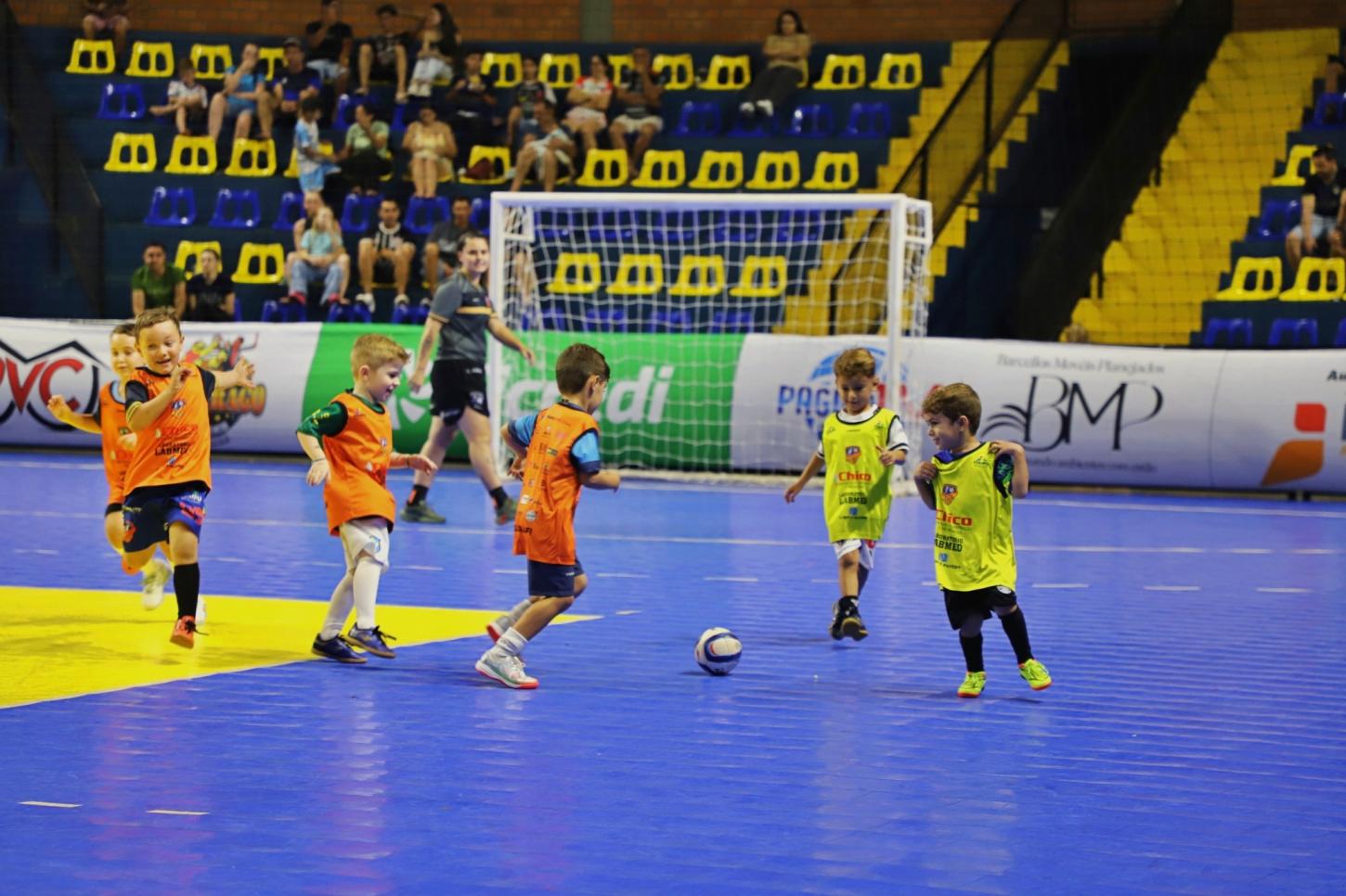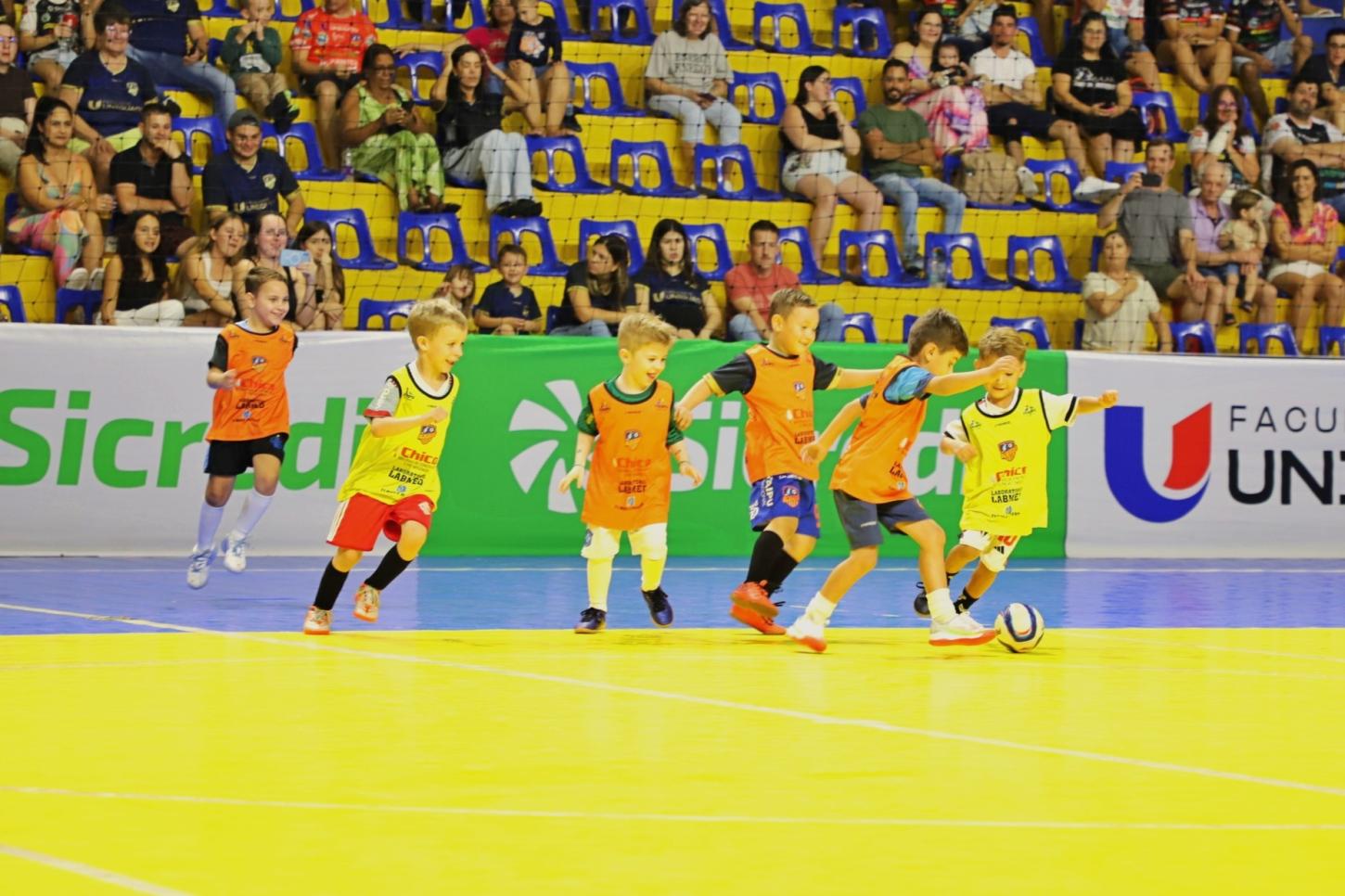 No intervalo, o público também acompanhou uma apresentação especial das categorias de base da AFI. As equipes Sub-5 e Sub-6 entraram em quadra para uma partida festiva, demonstrando o trabalho de formação desenvolvido pelo clube e proporcionando um momento de descontração, além de incentivar o esporte desde a infância.