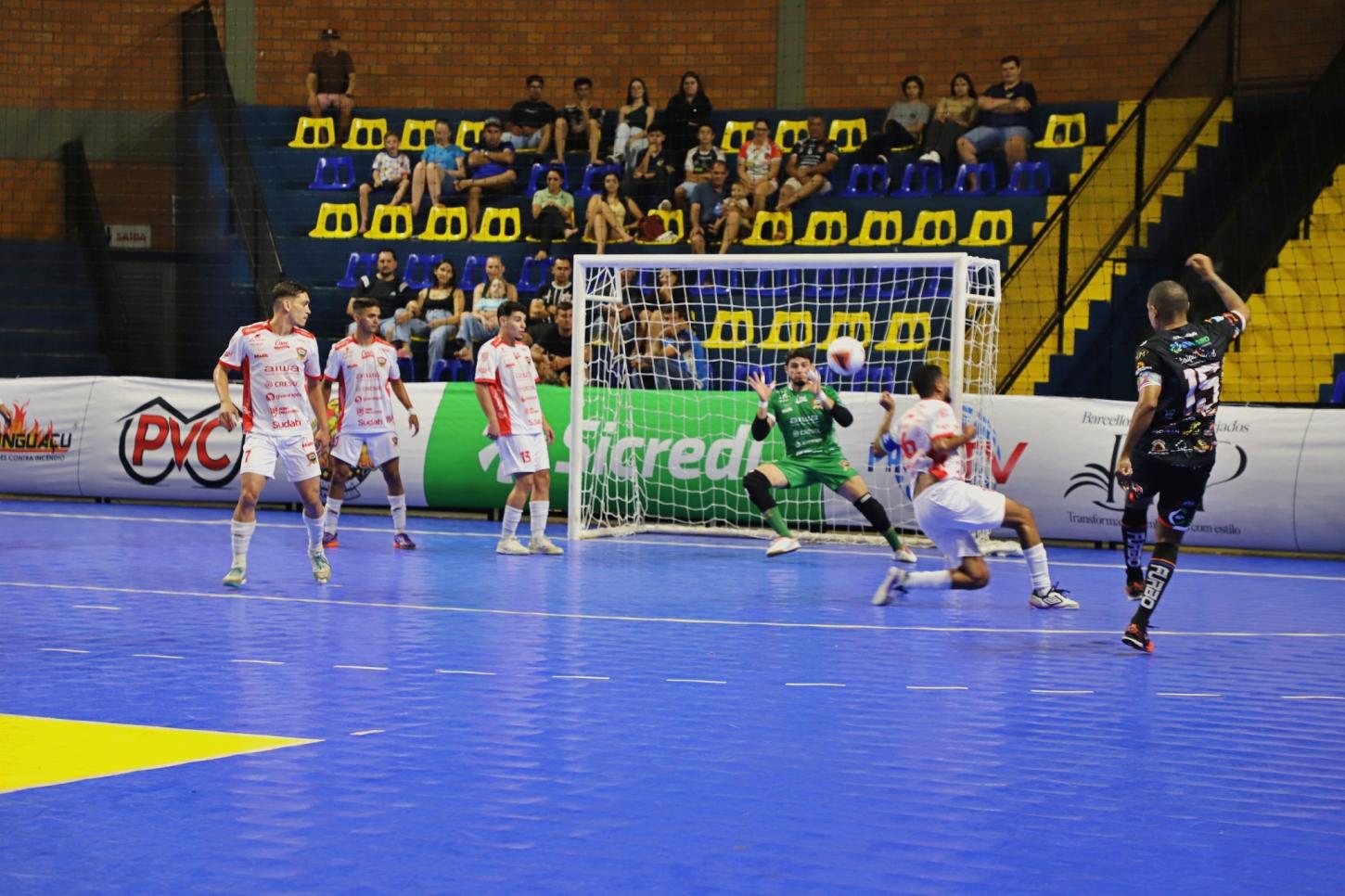 A AFI Uniguaçu Itaipulândia conquistou uma vitória convincente diante de sua torcida na noite de terça-feira ao derrotar o Palmas por 4 a 1, em confronto válido pela Copa União. Jogando em casa, o time demonstrou superioridade desde o início, com gols de Ari, Kanté, Café e Marcinho, garantindo o placar elástico e animando o público presente no ginásio.