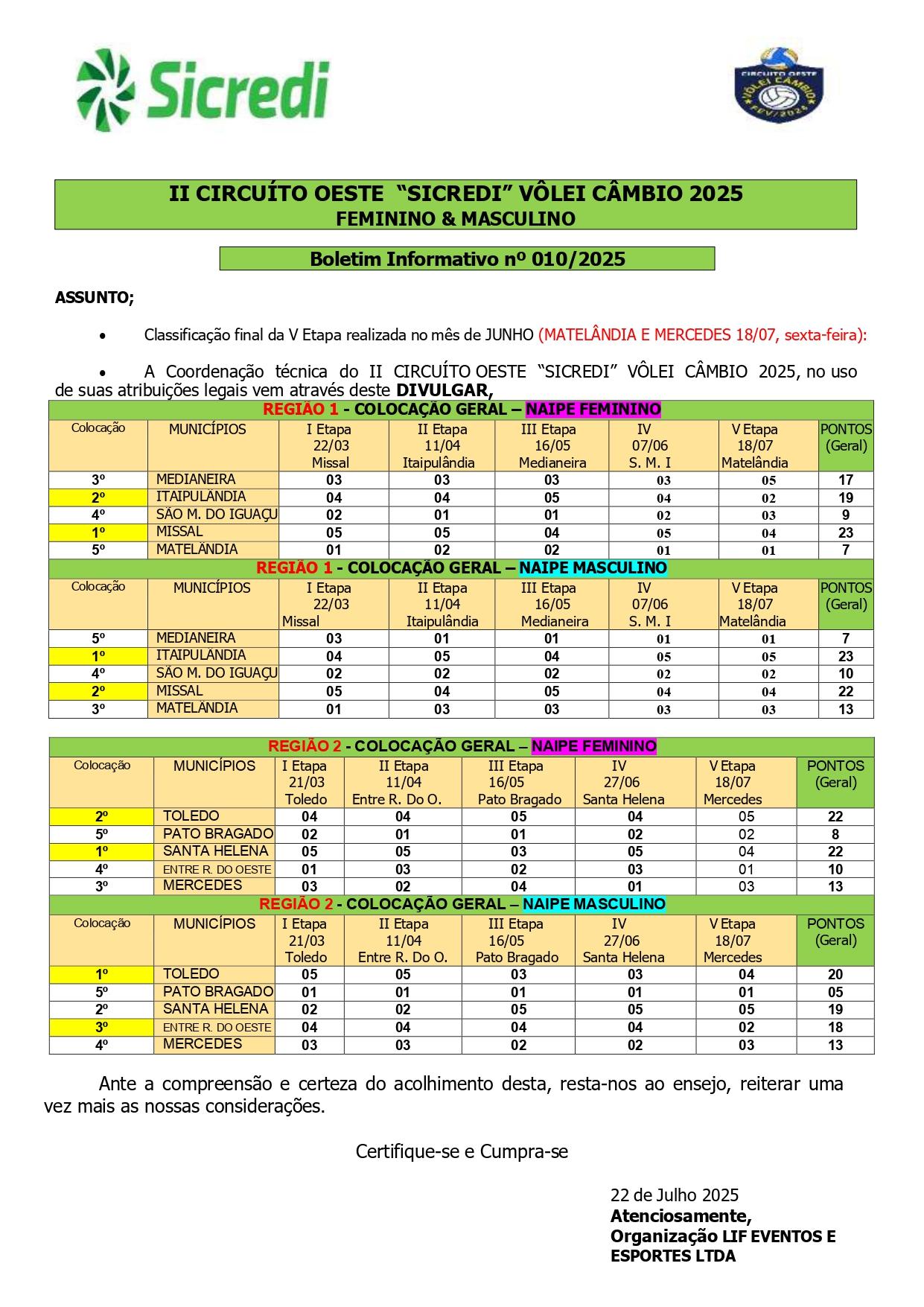 Na sexta-feira (18), as equipes de Voleibol Adaptado de Itaipulândia participaram da 5ª etapa do II Circuito Sicredi de Vôlei Câmbio 2025, realizada na cidade de Matelândia.