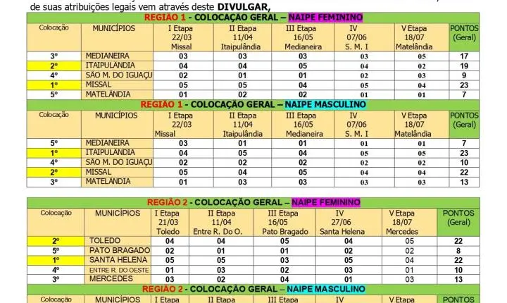 A equipe masculina segue invicta e manteve a liderança da competição com 23 pontos acumulados. Já a equipe feminina também garantiu um excelente desempenho, alcançando a vice-liderança com 19 pontos.