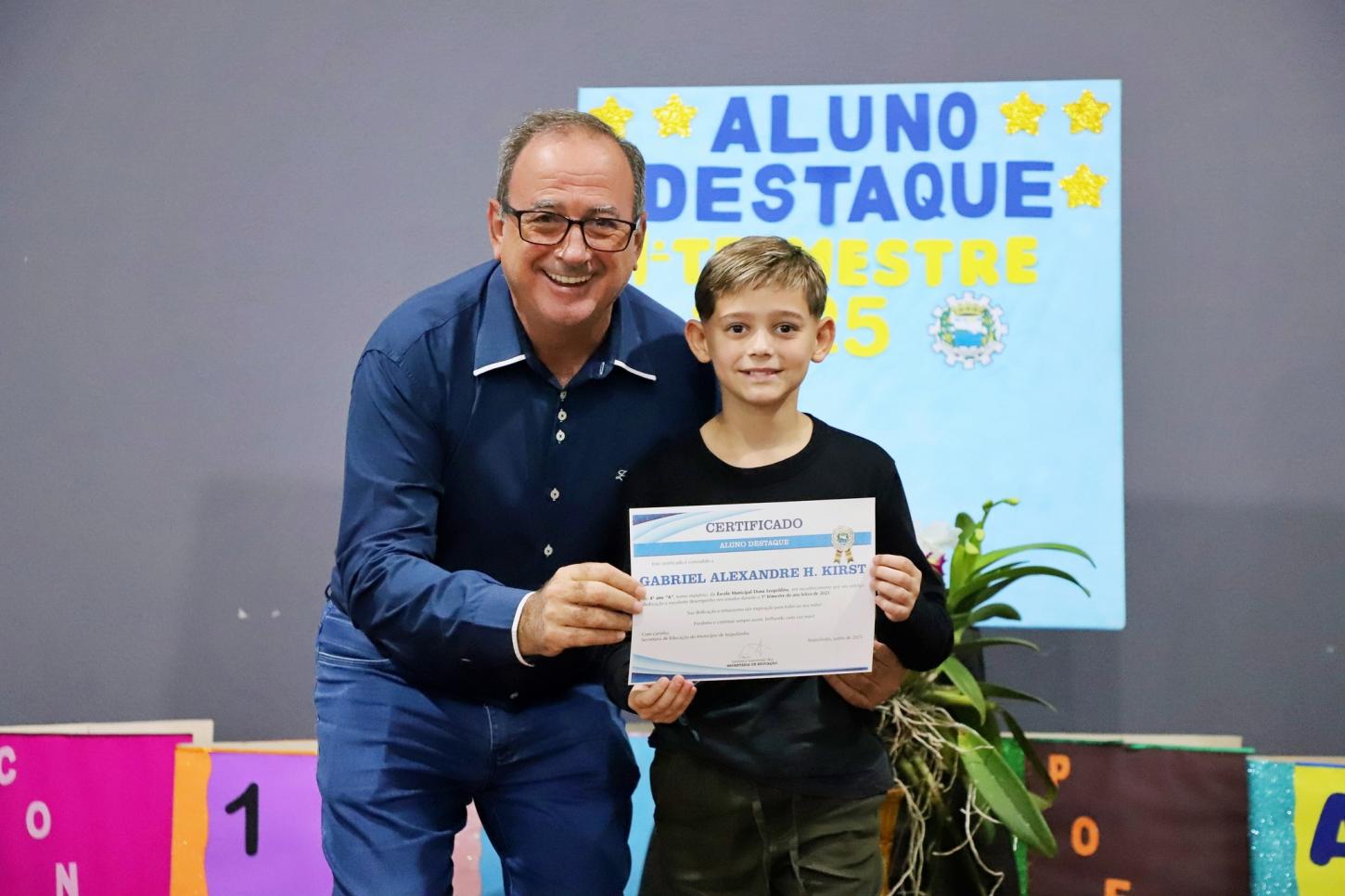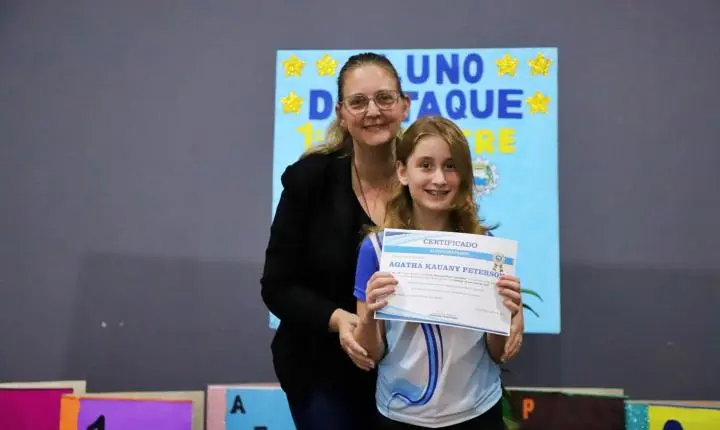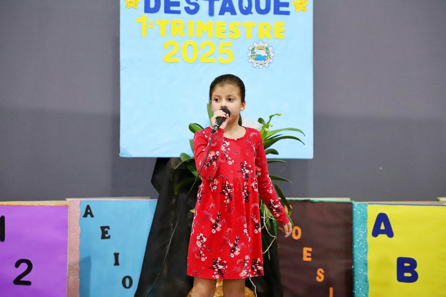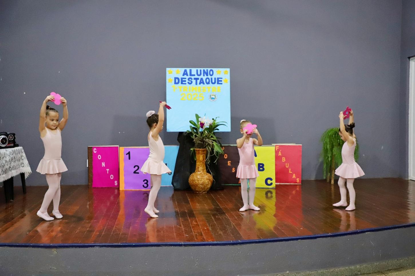 A Escola Municipal Dona Leopoldina realizou nesta semana uma cerimônia especial para homenagear 20 alunos que se destacaram no 1º trimestre letivo de 2025, com médias acima de 8,0 nas avaliações do Projeto Mais IDEB nos Municípios Lindeiros ao Lago de Itaipu, nas avaliações de Língua Portuguesa e Matemática aplicadas pela SMED e no Compromisso Nacional Criança Alfabetizada (CNCA). O evento também prestou reconhecimento aos professores da turma com melhor desempenho da escola, reforçando a valorização do trabalho pedagógico coletivo.