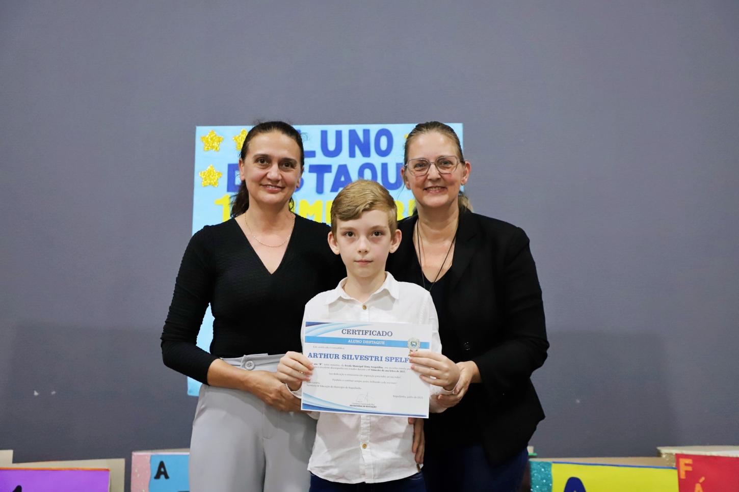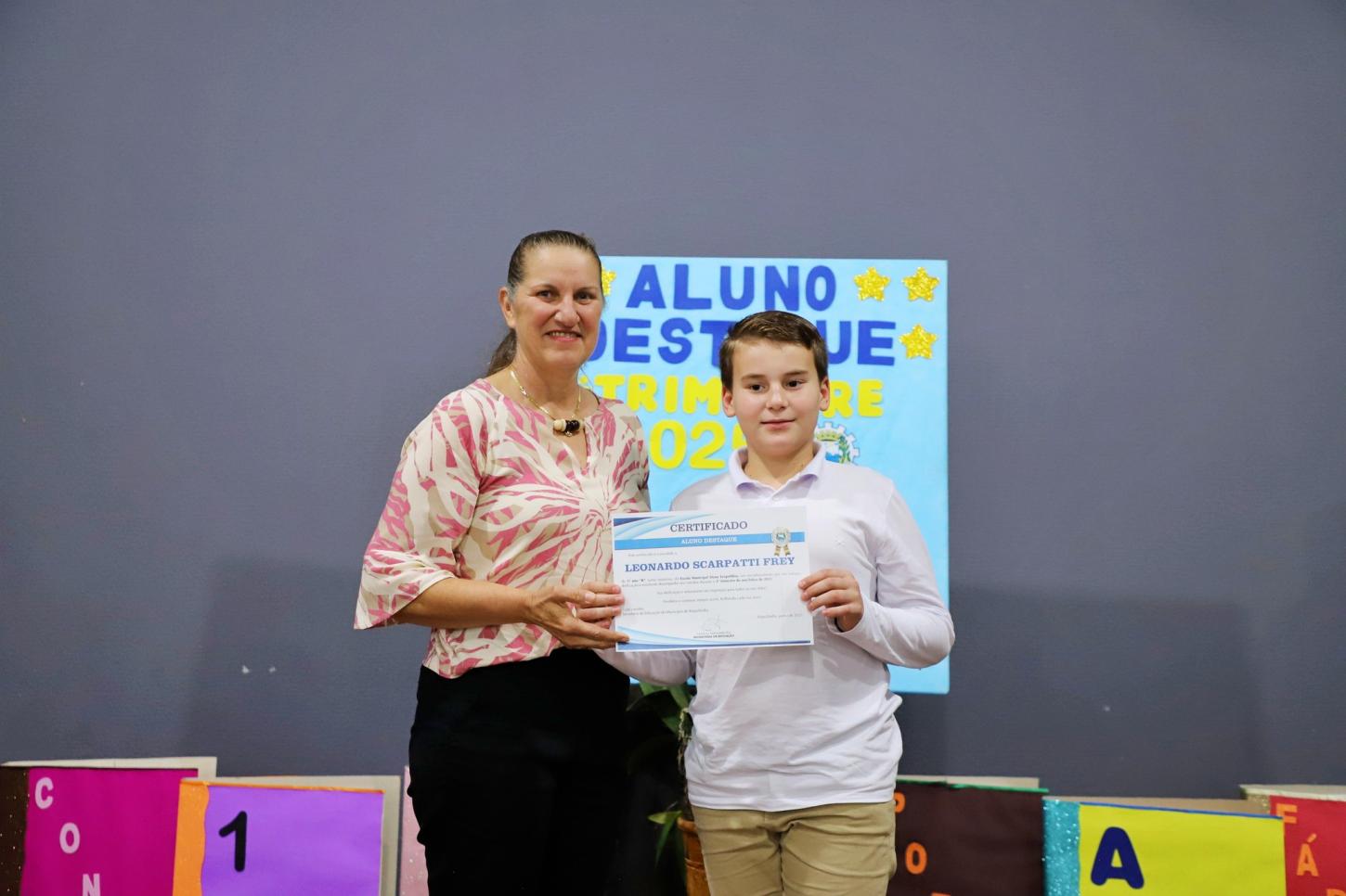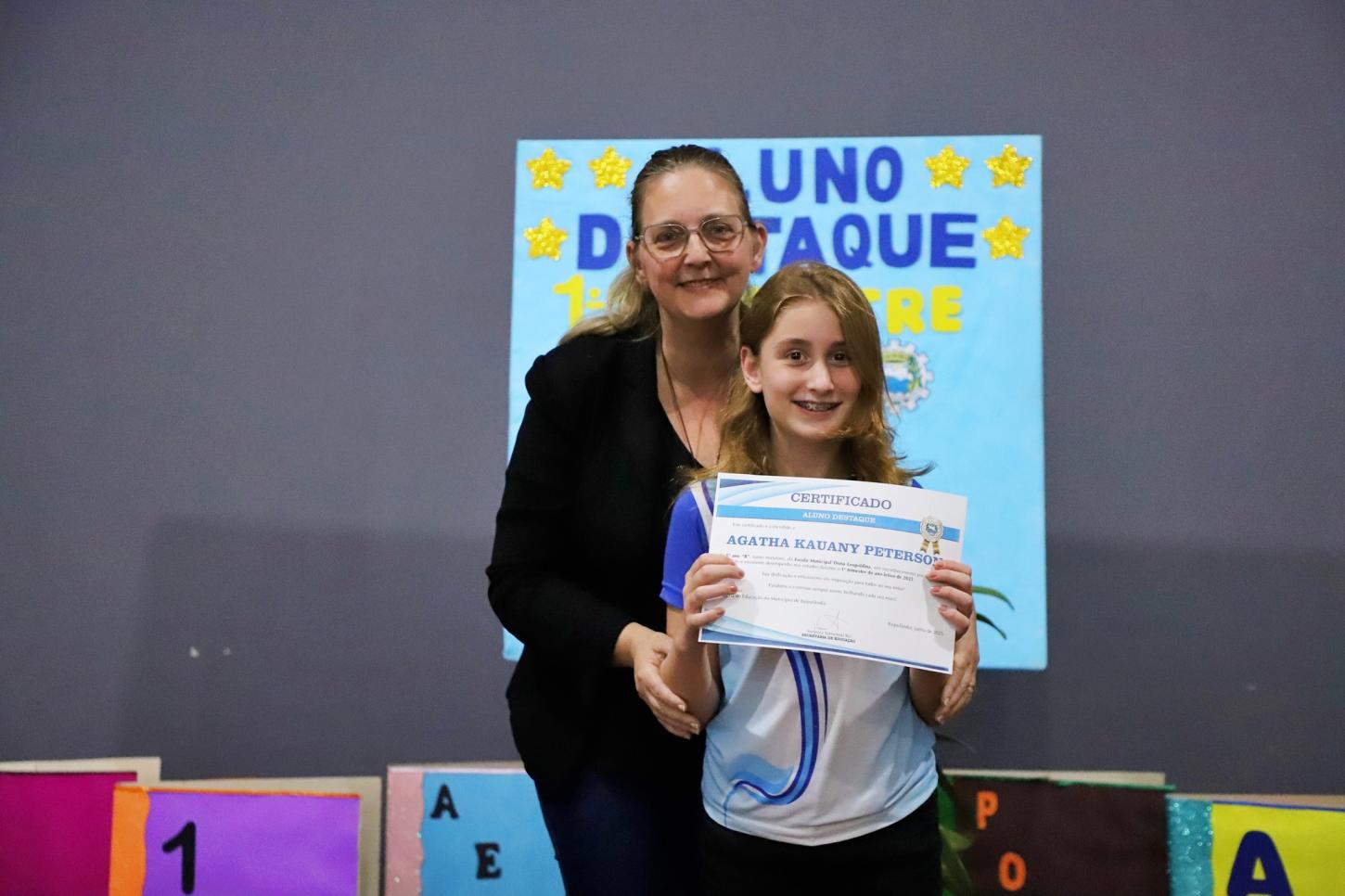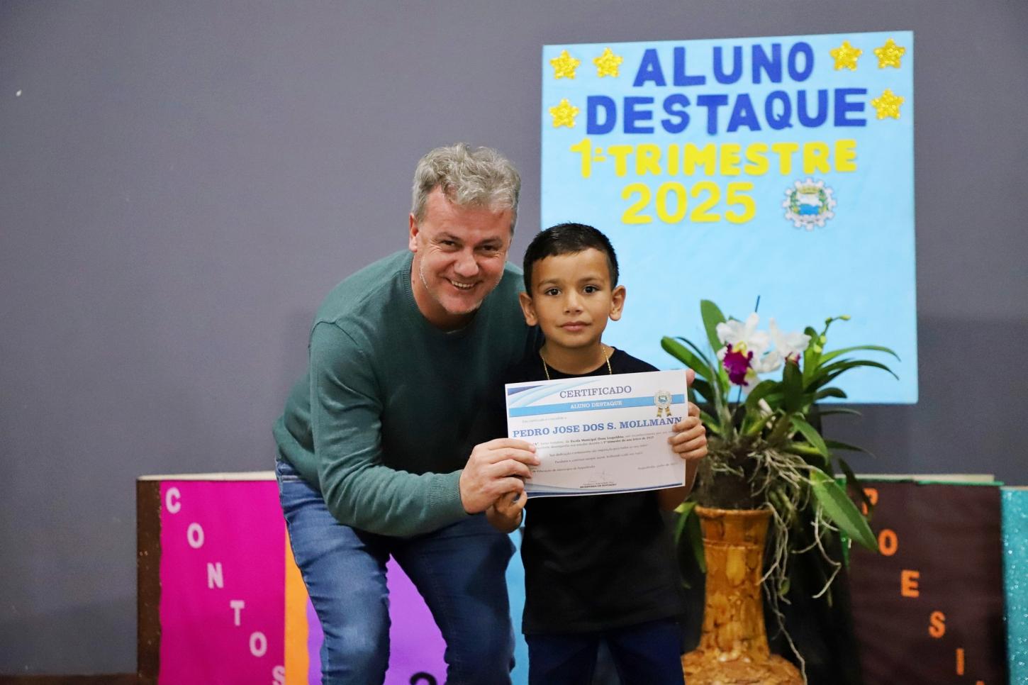 A Escola Municipal Dona Leopoldina realizou nesta semana uma cerimônia especial para homenagear 20 alunos que se destacaram no 1º trimestre letivo de 2025, com médias acima de 8,0 nas avaliações do Projeto Mais IDEB nos Municípios Lindeiros ao Lago de Itaipu, nas avaliações de Língua Portuguesa e Matemática aplicadas pela SMED e no Compromisso Nacional Criança Alfabetizada (CNCA). O evento também prestou reconhecimento aos professores da turma com melhor desempenho da escola, reforçando a valorização do trabalho pedagógico coletivo.