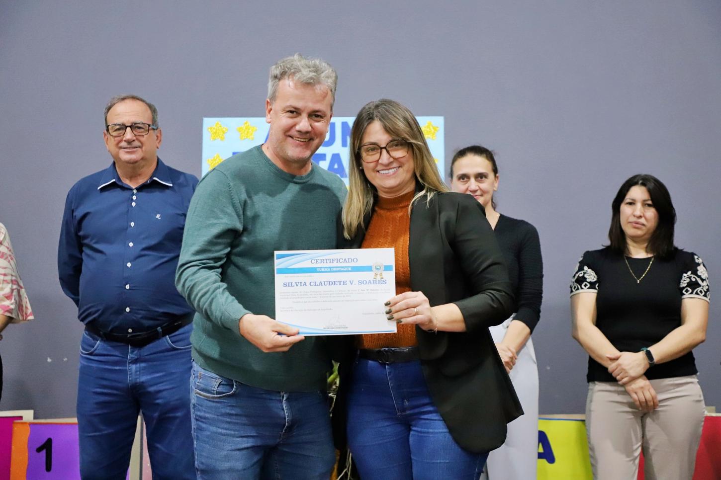 Além dos 20 alunos homenageados, a equipe docente do 5º Ano B também foi homenageada pelo excelente desempenho da turma, evidenciando que o avanço na aprendizagem é resultado direto do trabalho coletivo, comprometido e qualificado.