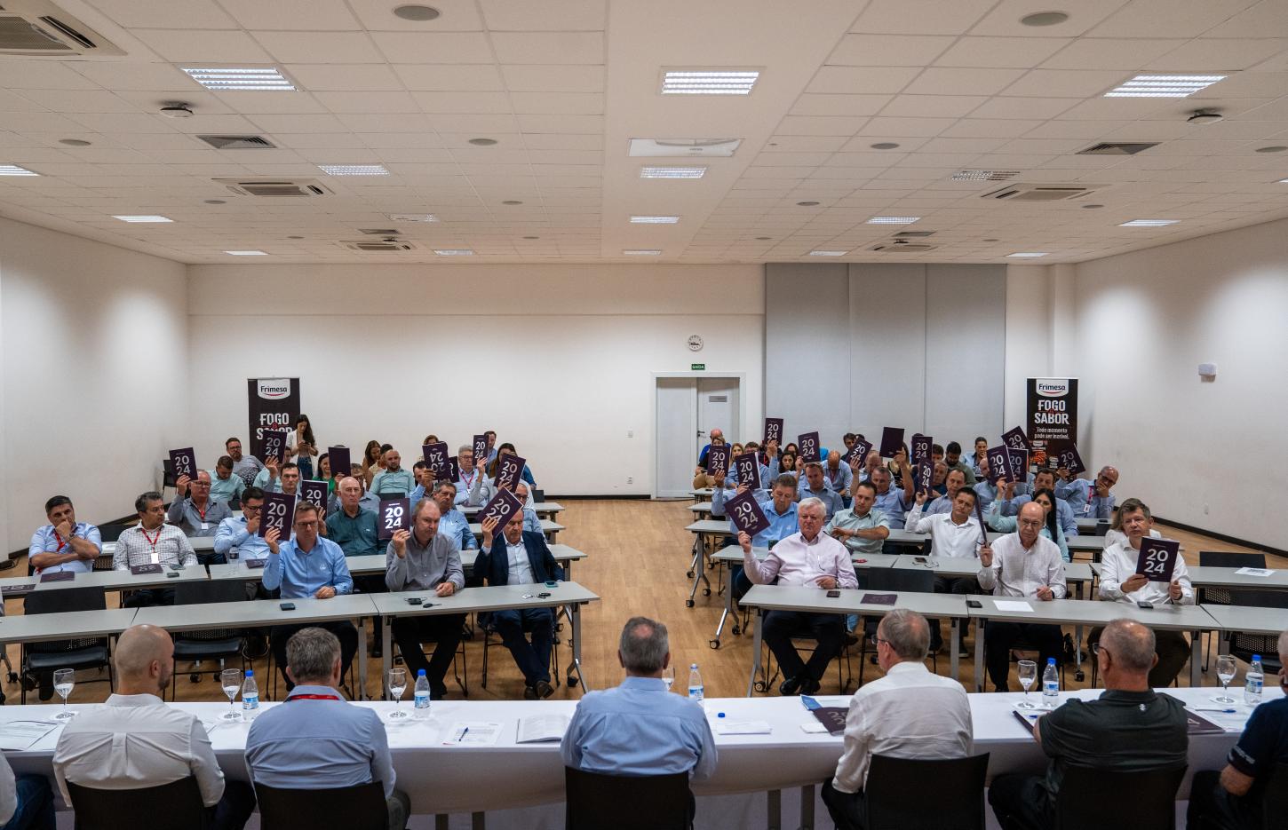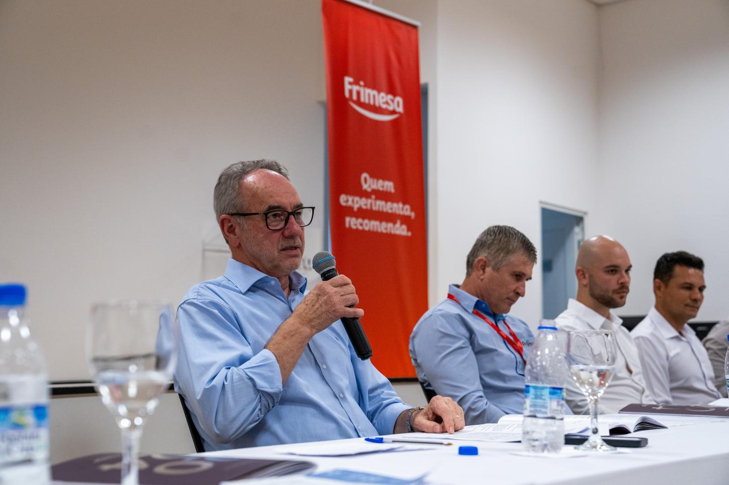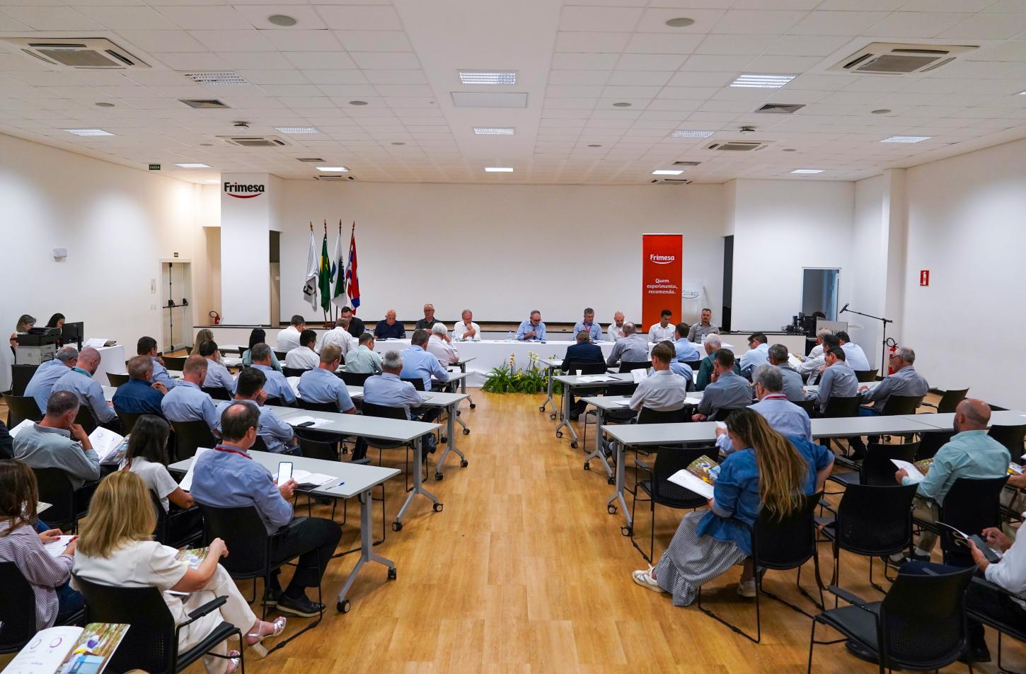 A Frimesa Cooperativa Central teve sua prestação de contas do ano de 2024 aprovada na tarde desta quarta-feira (19), durante a realização da Assembleia Geral Ordinária – AGO. Com a presença da maioria dos delegados das cinco filiadas: Lar, Copacol, C.Vale, Primato e Copagril, do presidente da Ocepar, José Roberto Ricken, e demais autoridades locais, a cooperativa fechou o ano com R$ 6,5 bilhões de faturamento, um aumento de 7,5% em comparação com o ano de 2023.