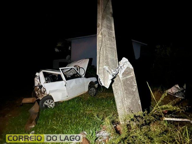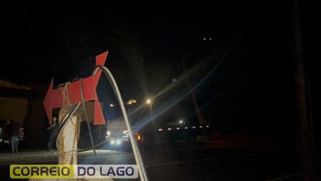 Com a força da colisão, dois postes foram completamente destruídos, evidenciando a gravidade do impacto.