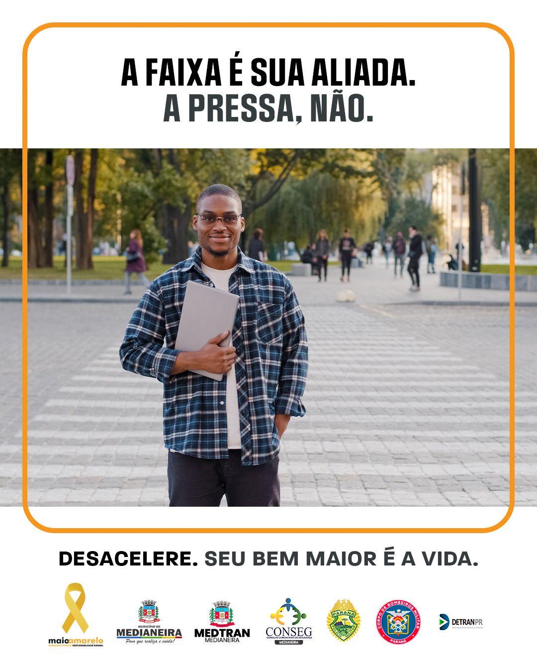 O Departamento de Trânsito de Medianeira (Medtran) aderiu à campanha nacional Maio Amarelo, promovida pelo Detran, que neste ano tem como tema "Desacelere. Seu bem maior é a vida."