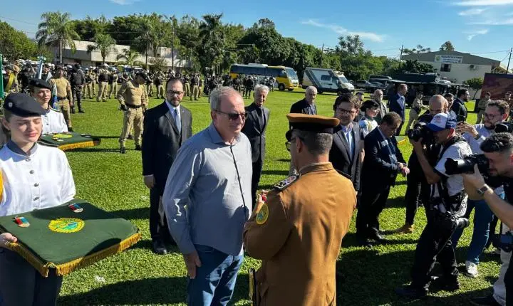 Na quinta-feira (8), a convite do comandante do 14º Batalhão da Polícia Militar de Foz do Iguaçu, Coronel Márcio Skovronski, o Prefeito Lindolfo Martins Rui participou da solenidade em comemoração aos 40 anos de fundação do Batalhão. O evento reuniu diversas autoridades civis e militares e celebrou a história de dedicação e serviço prestado pela corporação à população da região trinacional.
